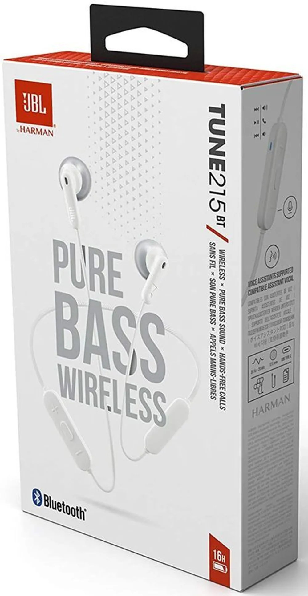 אוזניות אלחוטיות עם כבל מקשר JBl Tune T215BT בצבע לבן