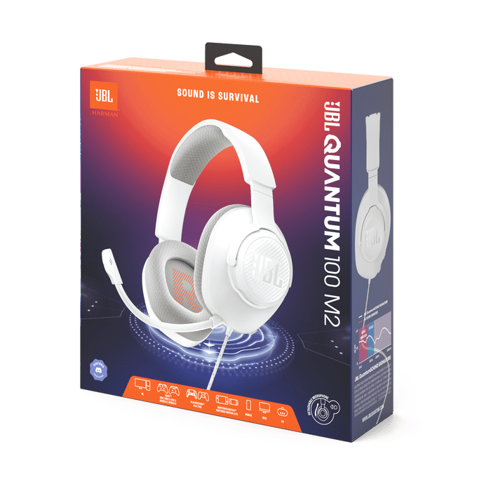 אוזניות גיימינג חוטיות עם מיקרופון Jbl Quantum 100M2 בצבע לבן