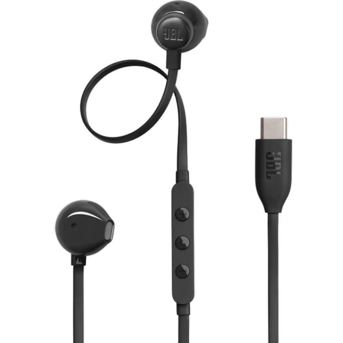 אוזניות חוט עם חיבור Jbl Tune 305C Type-C בצבע שחור