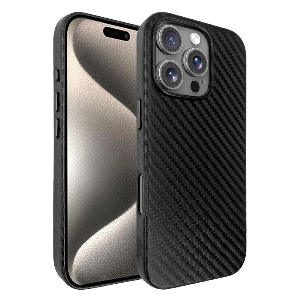 כיסוי דמוי עור אקסלוסיבי עבור iphone 16 Pro תומך Magsafe בצבע שחור קרבון