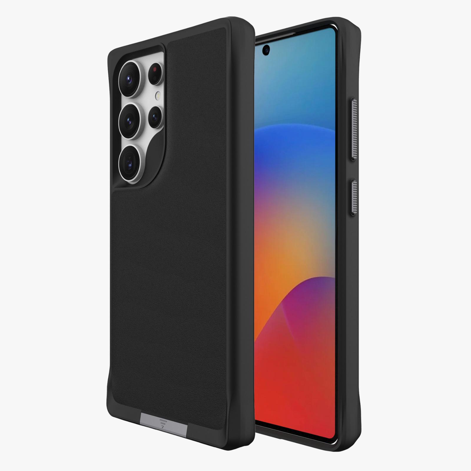 כיסוי מקושח איכותי במיוחד תומך Magsafe ורגלית עבור Samsung S25 Ultra בצבע שחור