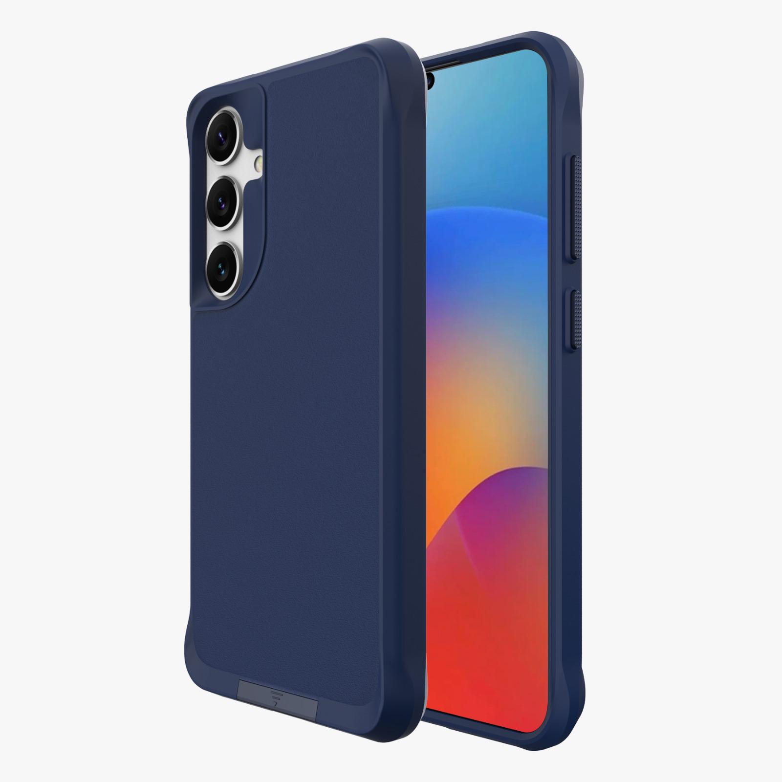 כיסוי מקושח איכותי במיוחד תומך Magsafe ורגלית עבור Samsung S25 / S24 בצבע כחול