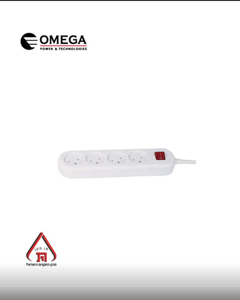 רב שקע 4 שקעים עם מפסק + כבל באורך 0.75 מטר מבית OMEGA