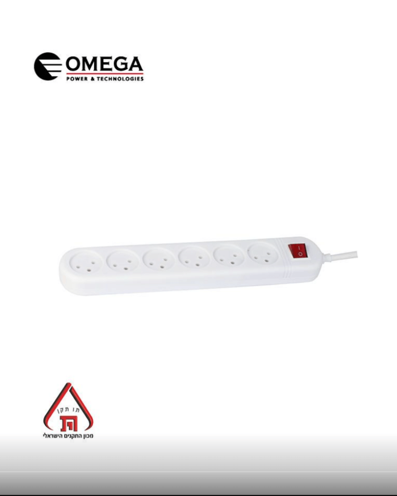 רב שקע 6 שקעים + כבל באורך 0.75 מטר מבית OMEGA